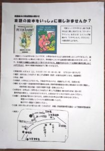 4月から「新・うめばたけこども図書室」を担当している山下英語学習相談室の佐々木陽子講師が、世界各国で親しまれている絵本「ピーターラビット」(ビアトリクス・ポッター作)をテキストとして、第1回の「英語絵本の読み聞かせ」を開催しました。